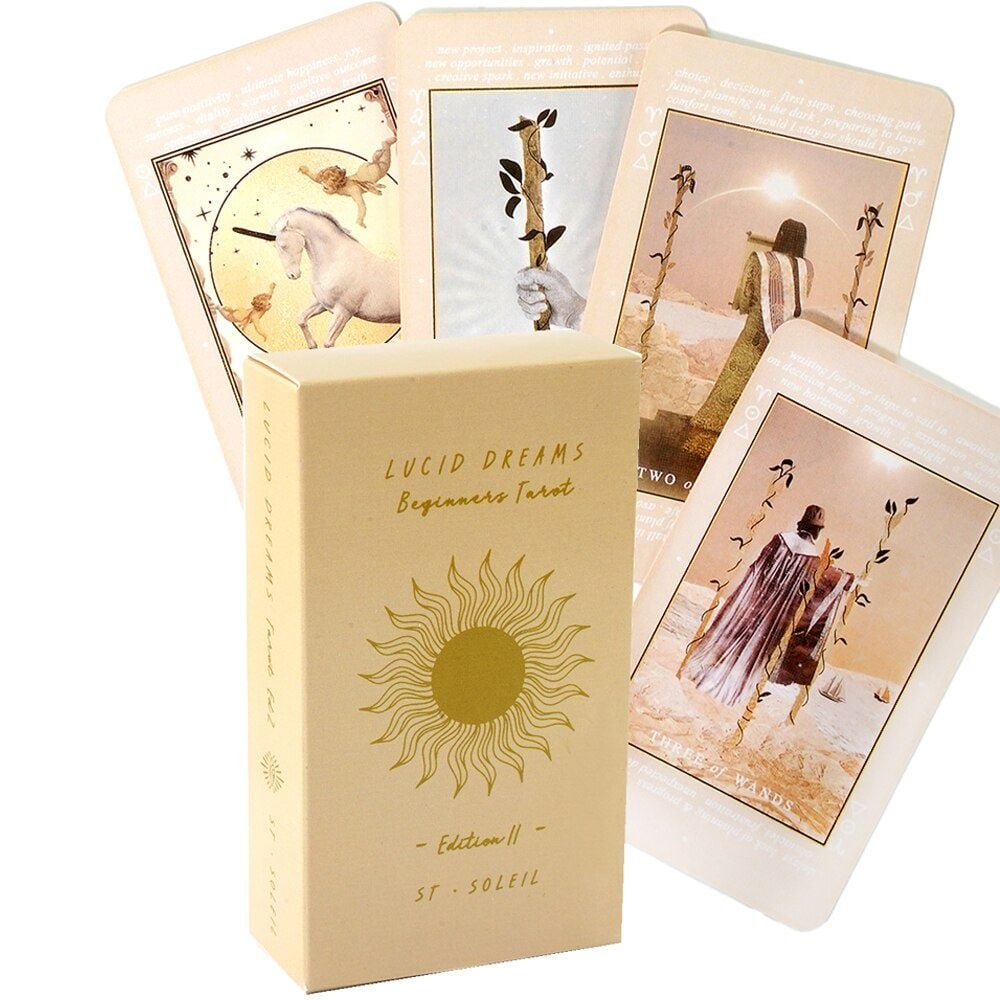 Bộ Tarot Lucid Dreams Beginners là một bộ bài Tarot đáng yêu và thú vị, dành cho những người mới bắt đầu khám phá thế giới Tarot và những giấc mơ tự lực. Bộ bài này gồm 78 lá bài, được minh họa một cách đơn giản và thân thiện. Mỗi lá bài trong bộ Tarot Lucid Dreams Beginners mang đến một hình ảnh và một thông điệp dễ hiểu, giúp bạn dễ dàng hiểu và áp dụng vào cuộc sống hàng ngày. Bộ bài này tạo ra một không gian mơ mộng và khám phá trong giấc mơ, khuyến khích sự tưởng tượng và truyền cảm hứng cho những ai muốn khám phá thế giới của giấc mơ và ý nghĩa bên trong. Bộ Tarot Lucid Dreams Beginners không chỉ giúp bạn khám phá và thấu hiểu các khía cạnh của giấc mơ và tiềm năng tiềm ẩn trong tâm trí, mà còn khuyến khích sự tự nhìn vào bên trong và sự sáng tạo. Bạn có thể sử dụng bộ bài này để truyền cảm hứng và nhận lời khuyên từ thế giới mơ mộng, và khám phá sự kết nối giữa tâm trí và hiện thực. Dù bạn là một người mới bắt đầu trong việc khám phá Tarot và giấc mơ, một người tìm kiếm sự truyền cảm hứng và sự kết nối với thế giới tưởng tượng, hay chỉ đơn giản muốn trải nghiệm một bộ bài Tarot dễ hiểu, bộ Tarot Lucid Dreams Beginners sẽ mang đến cho bạn một trải nghiệm thú vị và khám phá tiềm năng của tâm trí và giấc mơ.