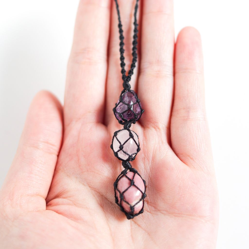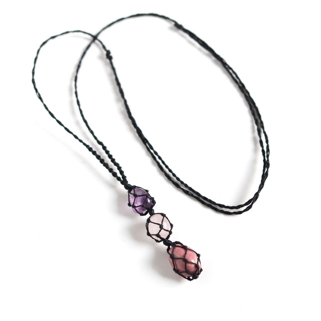 - Vòng cổ gồm 3 đá cho mệnh Hỏa, tương sinh mệnh thổ. Gồm đá Tường Vi (rhondonite) mang lại năng lượng cân bằng, Thạch anh hồng mang lại năng lượng tính yêu, Thạch anh tím mang lại năng lượng bình an