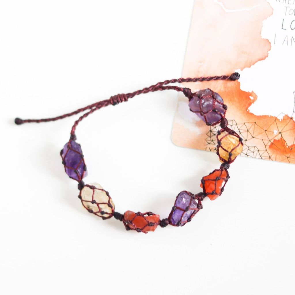 - Vòng tay mệnh thổ với 100% đá thô tự nhiên được làm làm thủ công bởi Crystals Macrame. Từ thạch anh tím, thạch anh vàng và carnelian.