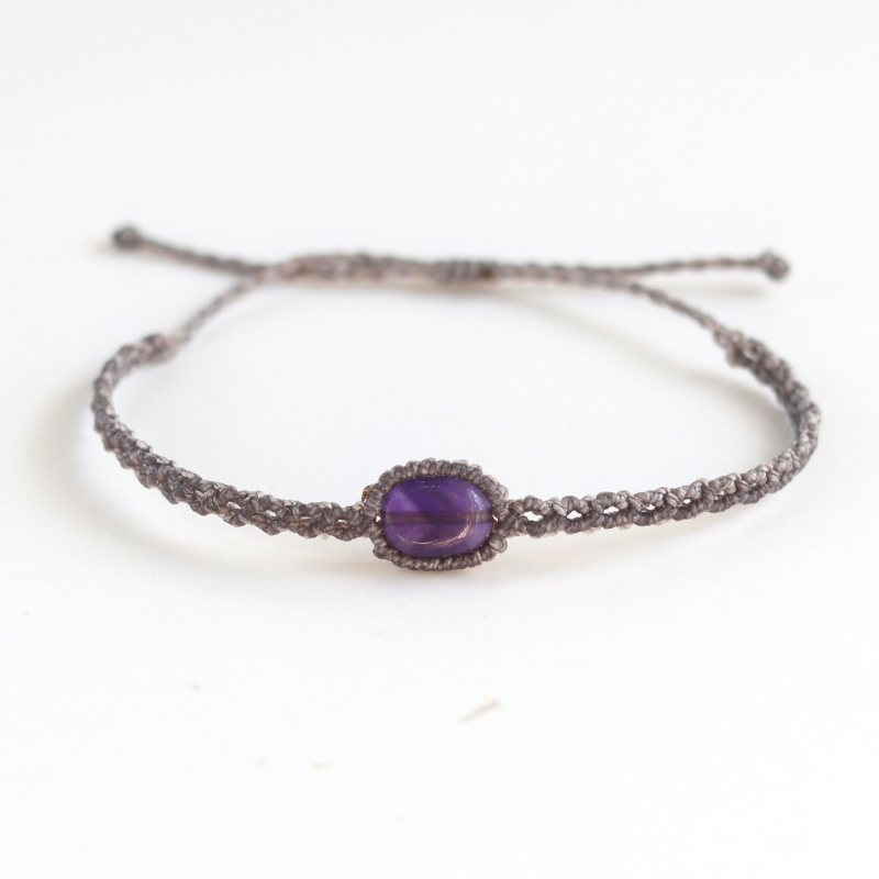 Vòng tay họa tiết macrame đá thạch anh tím (Amethyst)