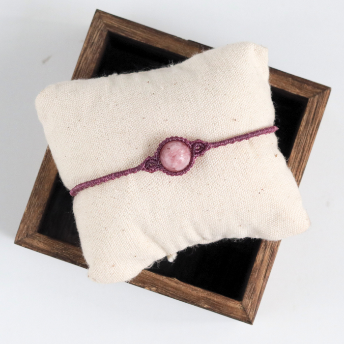 Sản phẩm vòng macrame được làm từ các viên đá tự nhiên, mỗi viên đều mang nét độc đáo riêng. Dây macrame được thắt thủ công tỉ mỉ, sử dụng chỉ Linhasita chất lượng cao nhập trực tiếp từ Brazil, dòng dây chuyên để làm trang sức macrame ở nước ngoài. Mỗi viên đá tự nhiên được chọn lọc kỹ càng để đảm bảo chất lượng cao và sự thăng hoa của màu sắc tự nhiên.