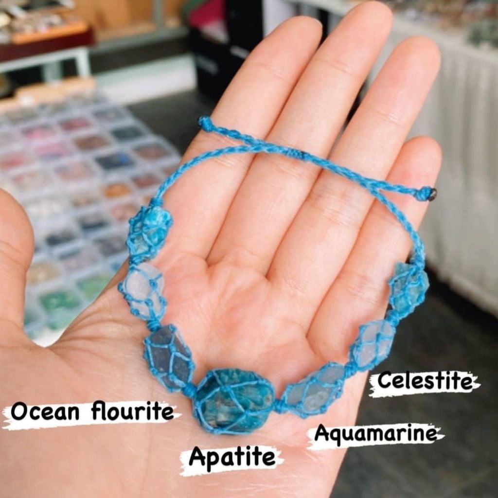 - Vòng tay mệnh thủy với 100% đá thô tự nhiên được làm làm thủ công bởi Crystals Macrame. Đá apatite, celestite, ocean flourite, aquamarine